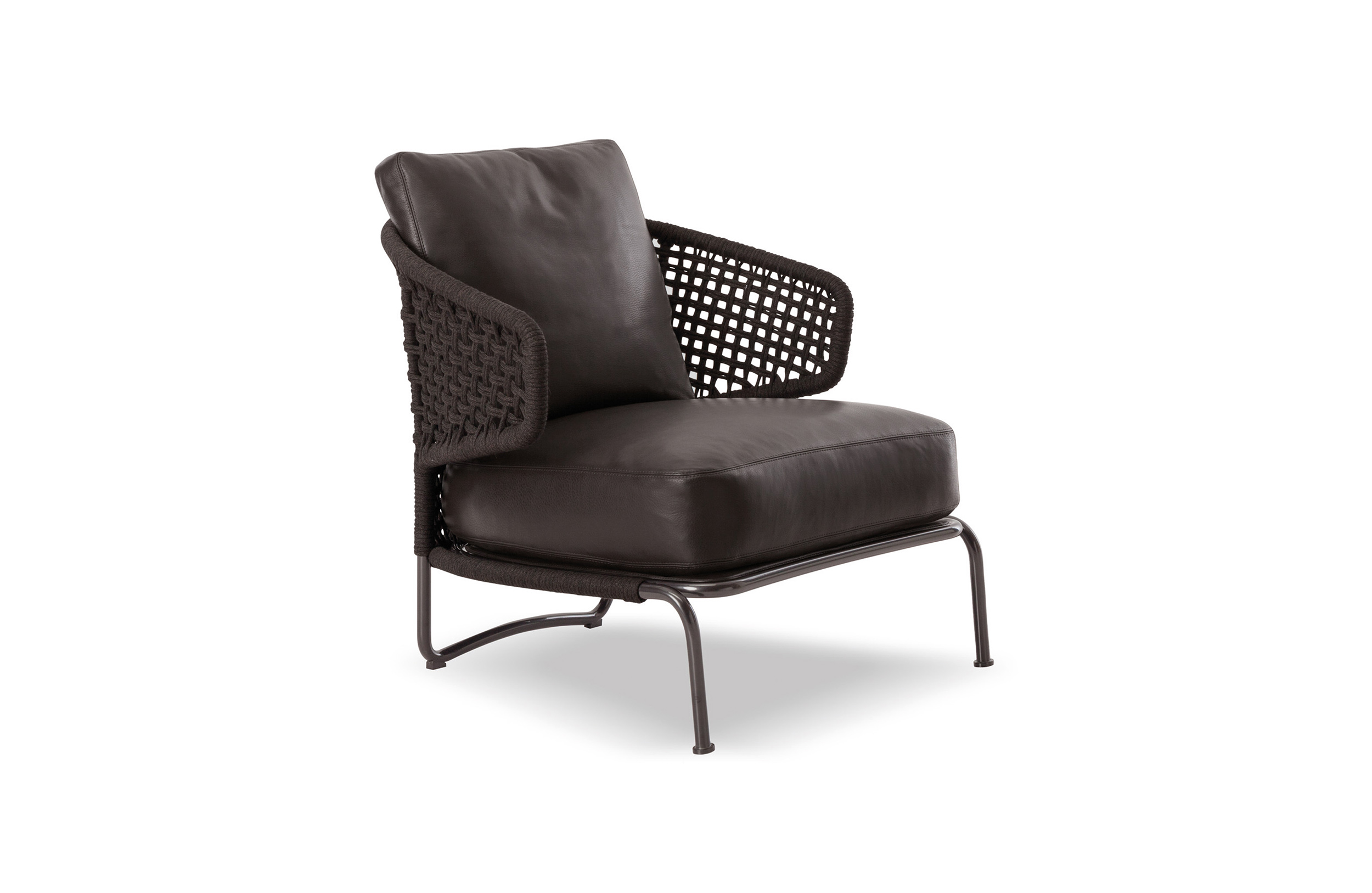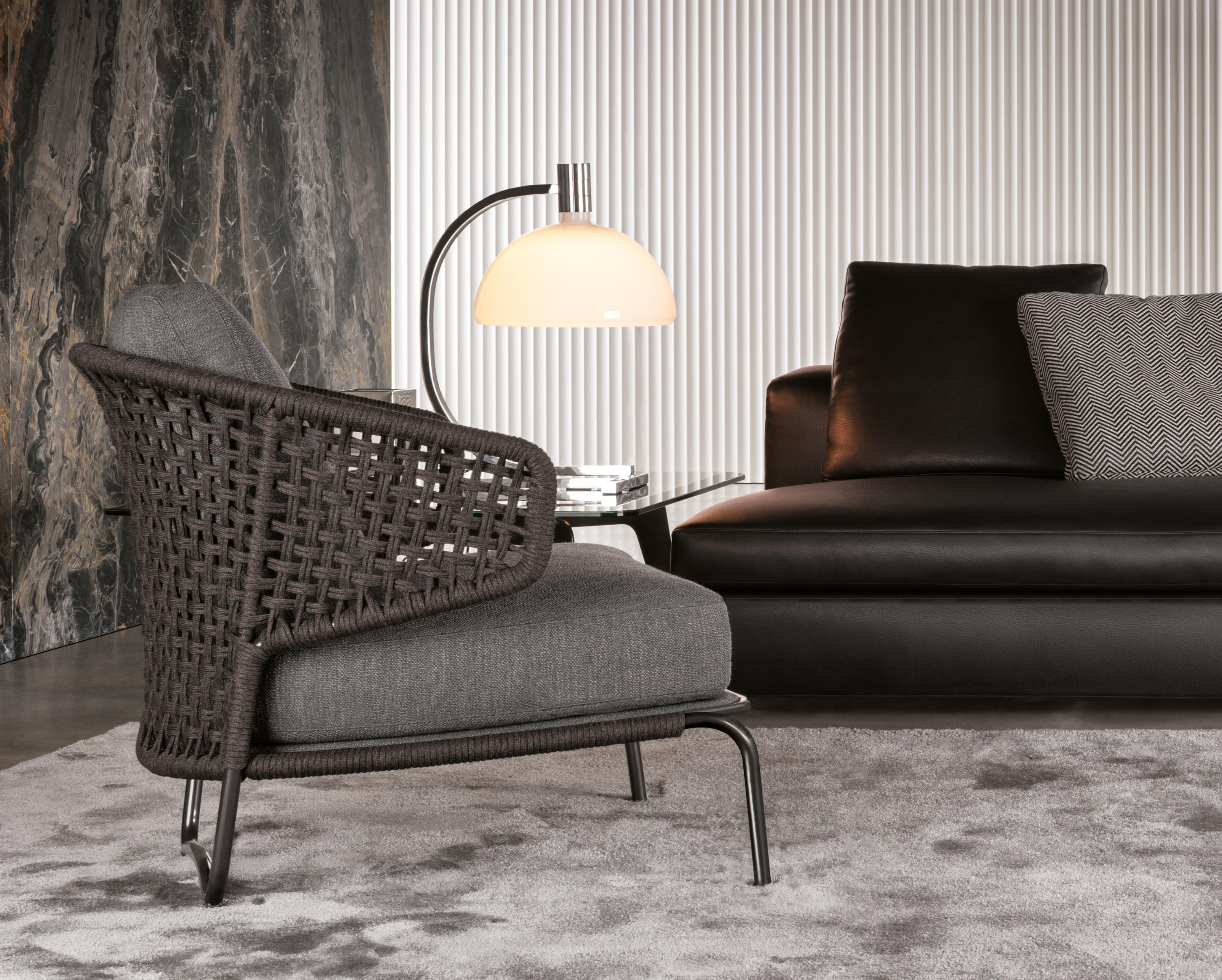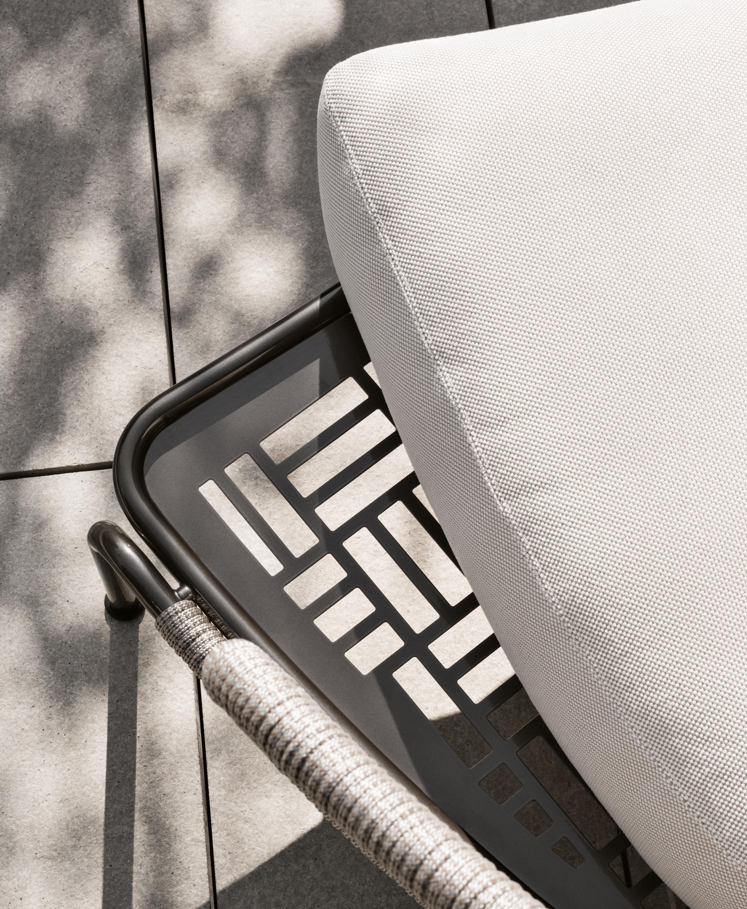 阿斯顿和阿斯顿 “绳”:两者拥有同样的设计内涵和共同的美学语言,和谐的线条和精简的造型可以打造极具创意的室内设计项目,室外和室内环境之间的连续性和统一的风格是其特点所在。阿斯顿 “绳” 室内扶手椅通过不同的材质来重新诠释设计理念。构架为金属材质,表面为Pewter色漆面,靠背采用直径为7毫米的特殊聚丙烯纱线编织而成,有两种颜色可供选择:浅灰色和深棕色。阿斯顿 “绳”室内扶手椅推出了有扶手和无扶手的两个版本,通过清新休闲的造型,可以打造出别具创意的室内和室外互动效果。