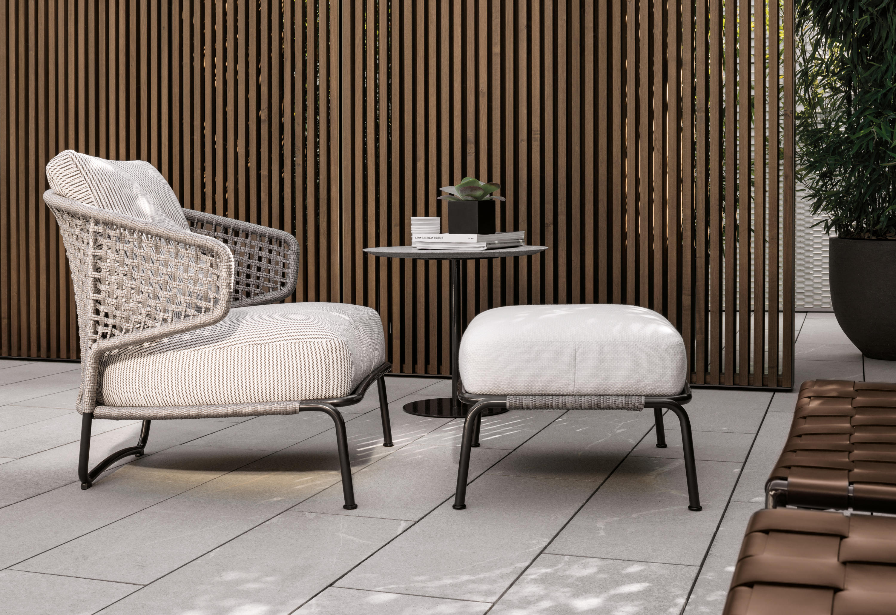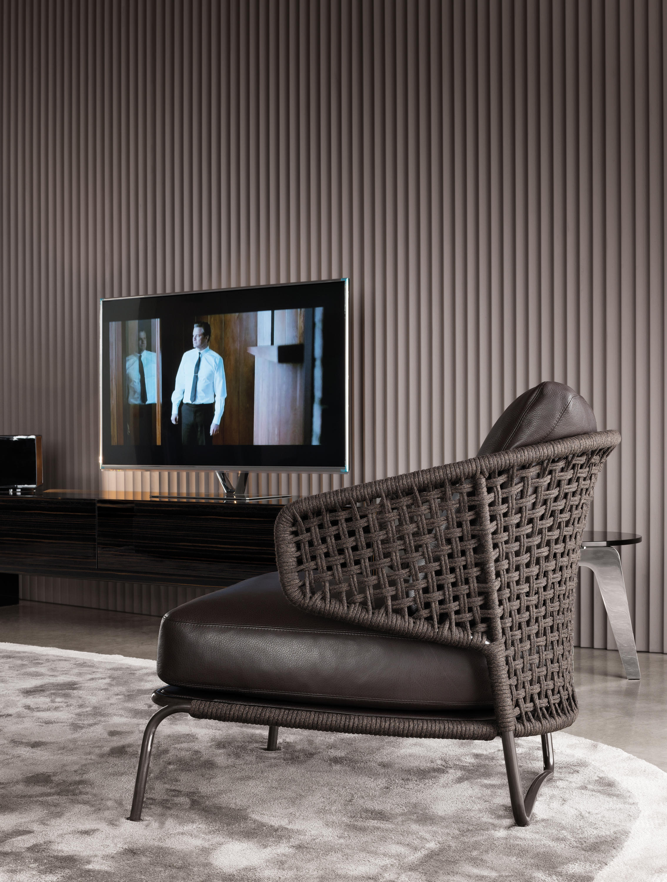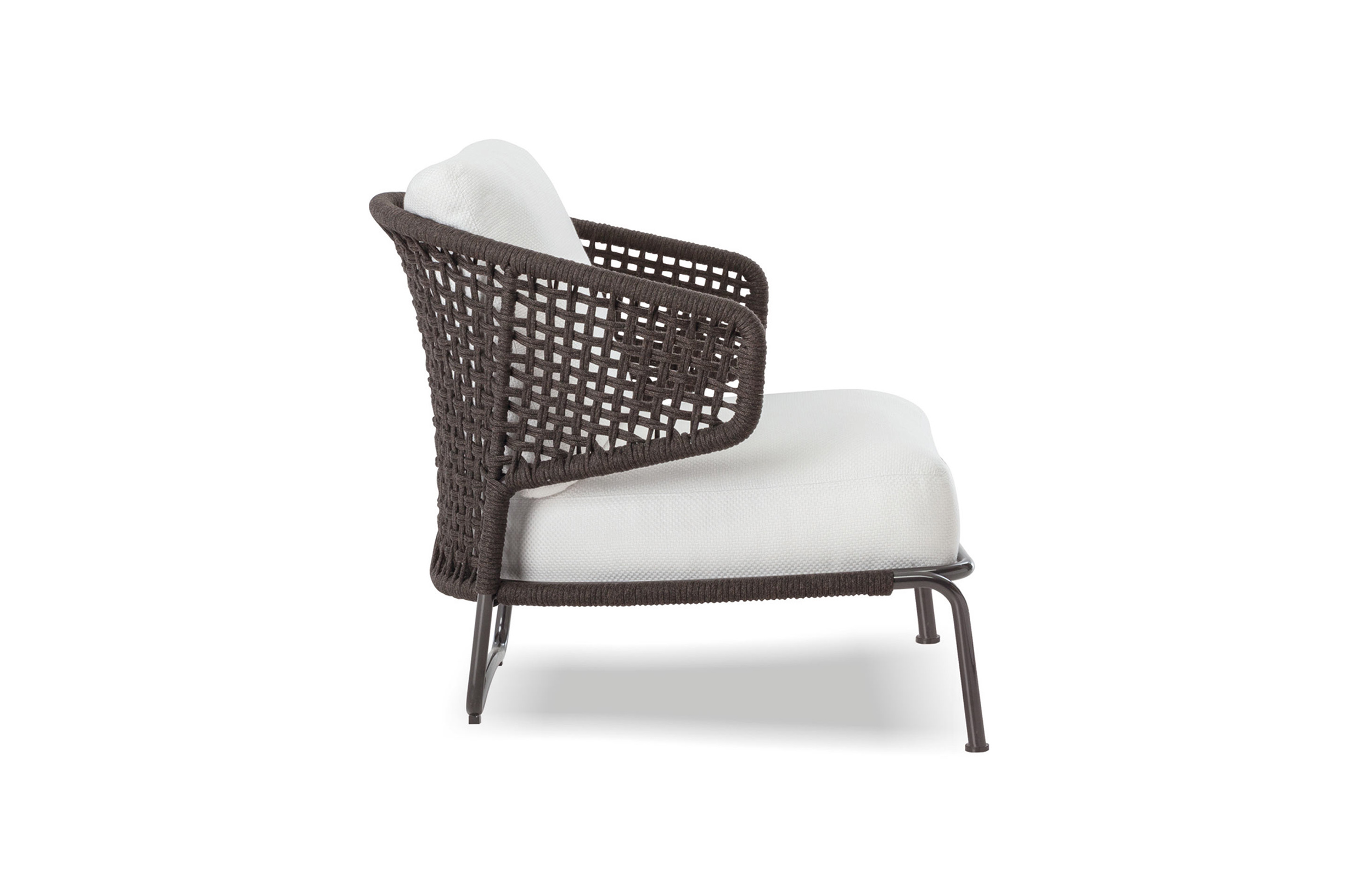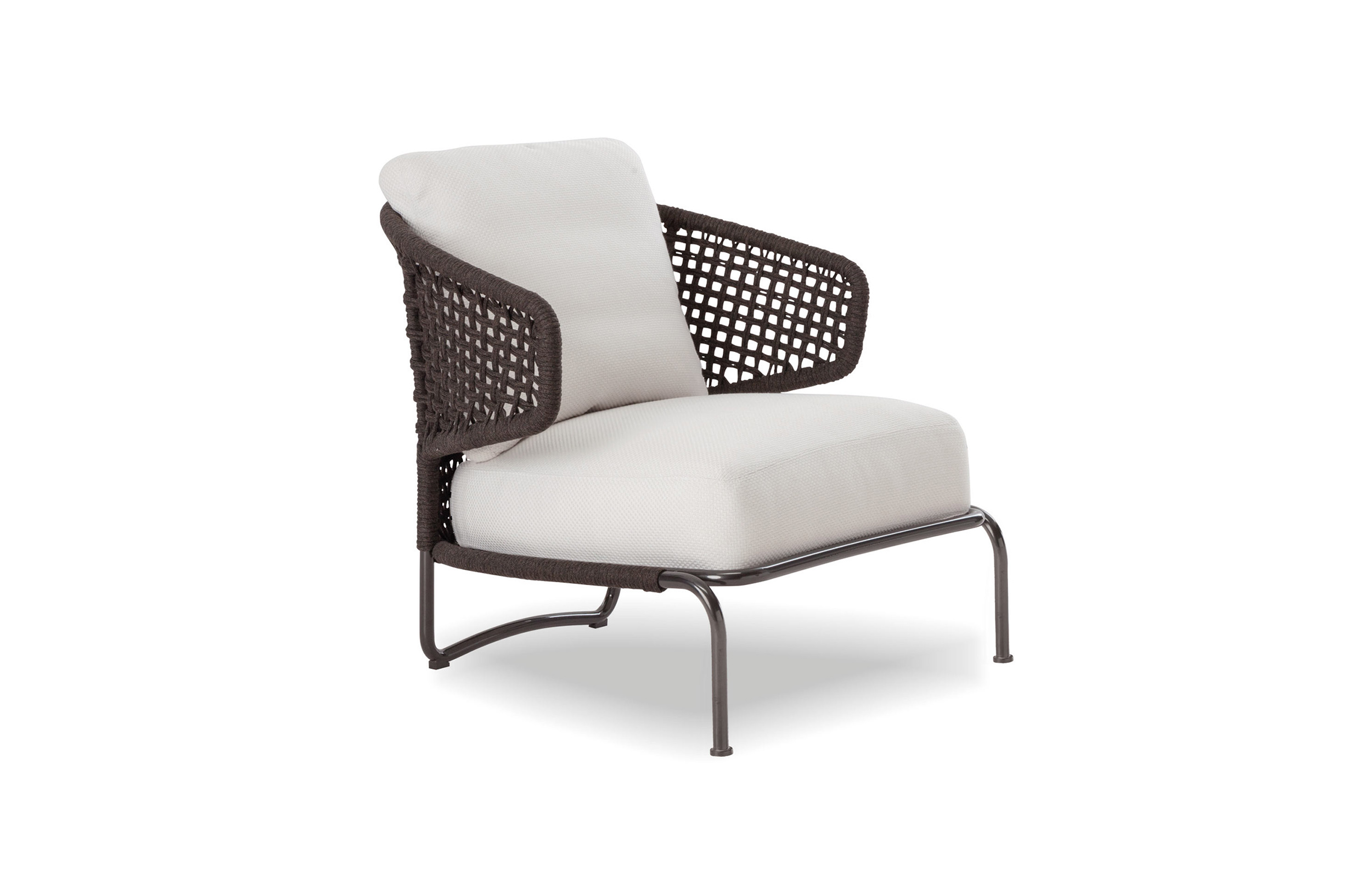 阿斯顿和阿斯顿 “绳”:两者拥有同样的设计内涵和共同的美学语言,和谐的线条和精简的造型可以打造极具创意的室内设计项目,室外和室内环境之间的连续性和统一的风格是其特点所在。阿斯顿 “绳” 室内扶手椅通过不同的材质来重新诠释设计理念。构架为金属材质,表面为Pewter色漆面,靠背采用直径为7毫米的特殊聚丙烯纱线编织而成,有两种颜色可供选择:浅灰色和深棕色。阿斯顿 “绳”室内扶手椅推出了有扶手和无扶手的两个版本,通过清新休闲的造型,可以打造出别具创意的室内和室外互动效果。