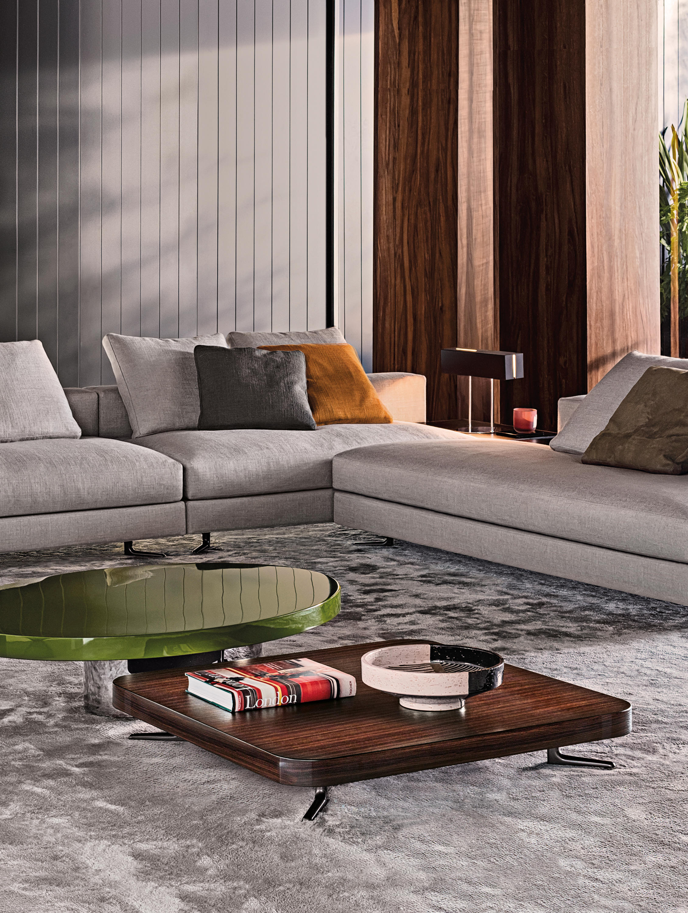 体积与造型的游戏,大胆的不对称性,一切似乎是对地心引力的挑战。这就是Raymond的美学理念。这款产品有两种高度可供选择,61厘米和74厘米。椭圆的造型是基座和台面的主题元素,基座采用镀铬金属制成,台面的亮光漆色彩缤纷:白色,Sand色,紫色,绿色和花岗石色。