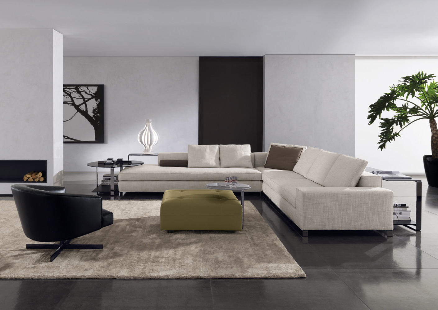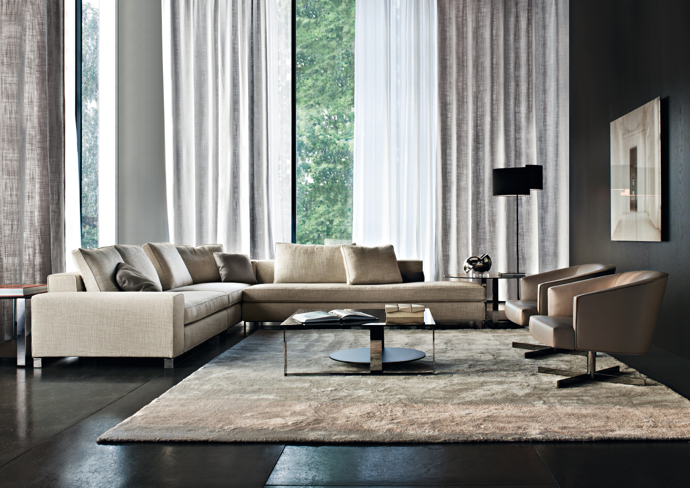 Bresson的边几系列有两个版本,圆形和方形,具有2009系列的风格。不同材质的组合使Bresson独一无二,与Williams搭配相得益彰。激光切割的黑镍金属构架的曲线结构,借鉴了Williams沙发的基座设计,打造出极致的美感。