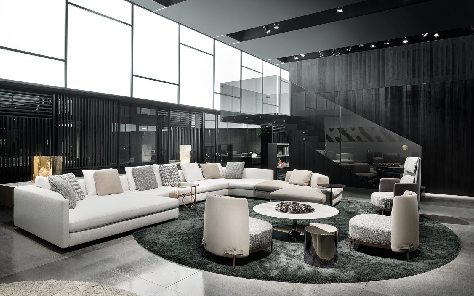 由正交线定义的轻金属结构的设计被大环打断,放置在不同的位置。除了打破轮廓的几何规律性外,圆形,取决于桌子的大小,成为连接或支持元素。眼睛被光环中心的空虚所吸引,产生了空间和轻盈的效果。