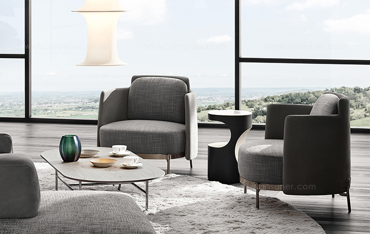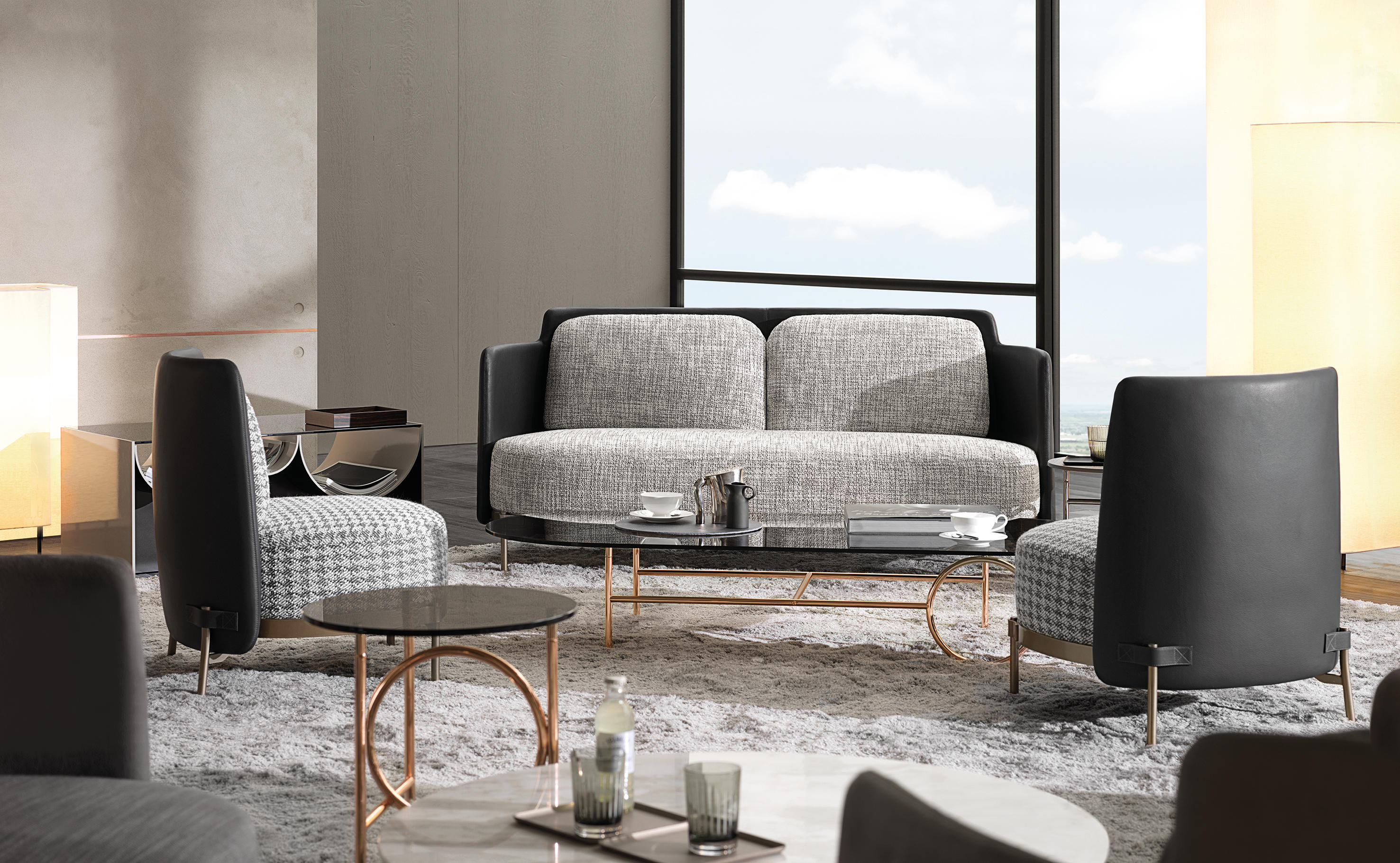 这种金属框架,有轻青铜、铜或黑镍,有不同的高度。圆桌由椭圆形或圆形顶部完成,直径不同,可在青铜玻璃、卡拉卡塔大理石或甘草刷灰中定制。