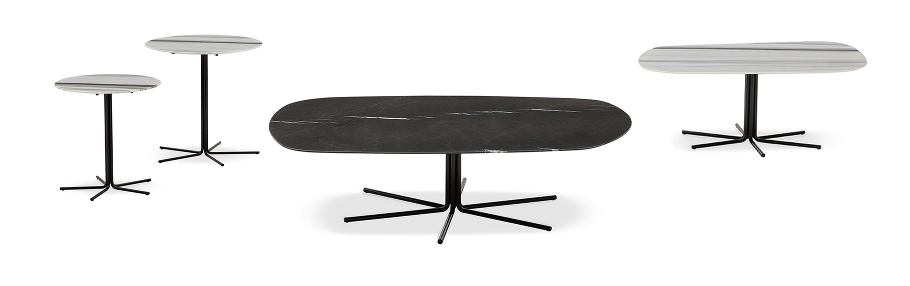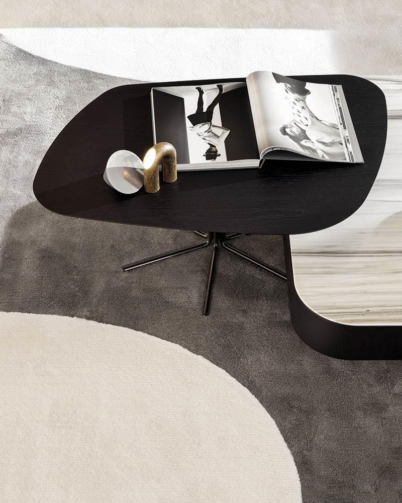 光线茶几是由其薄的厚度和空灵的结构来定义的,光线表是由顶部以不规则或圆形的有机形状完成的。这个放射状的底座,由一捆金属杆组成,可以垂直折叠起来,支撑顶部,在大理石或木头上。