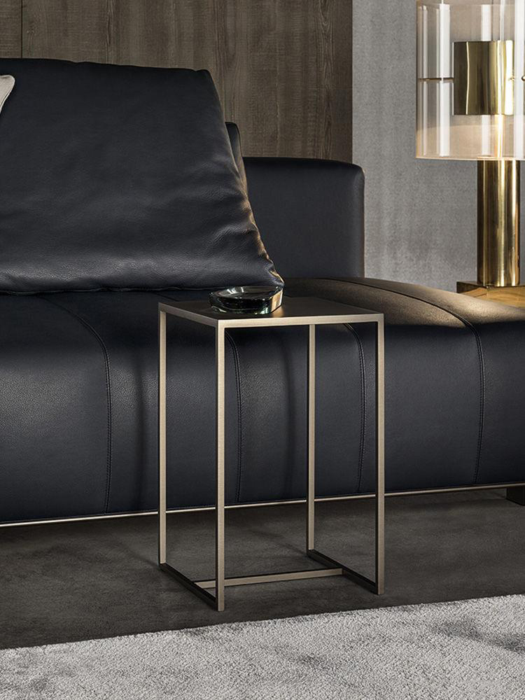 杜尚系列的边几采用纯粹的极简设计,功能多样,可以随心所欲地搭配Minotti产品系列中的所有沙发座椅,如今推出了亚光浅铜色漆面的金属版本。
