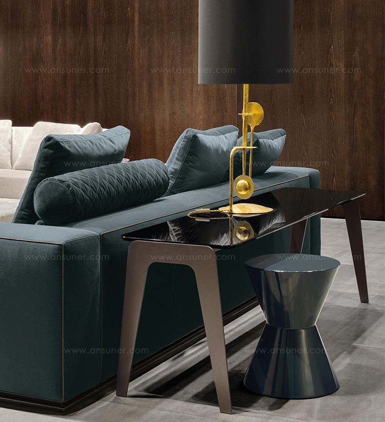 以精美梣木底座致敬传统黑檀木艺术,搭配拥有圆滑转角与柔和饰边的光泽漆面黑檀木、黑色脱蜡琉璃及 Marron Damasco 大理石台板。