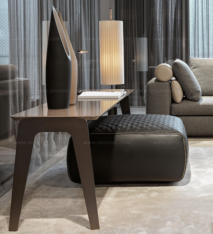 Kirk 木质底座茶几统一以矩形呈现,有三种长度可选。