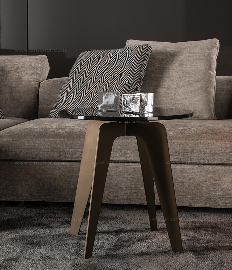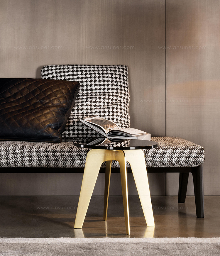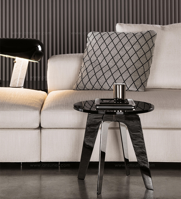 以精美梣木底座致敬传统黑檀木艺术,搭配拥有圆滑转角与柔和饰边的光泽漆面黑檀木、黑色脱蜡琉璃及 Marron Damasco 大理石台板。