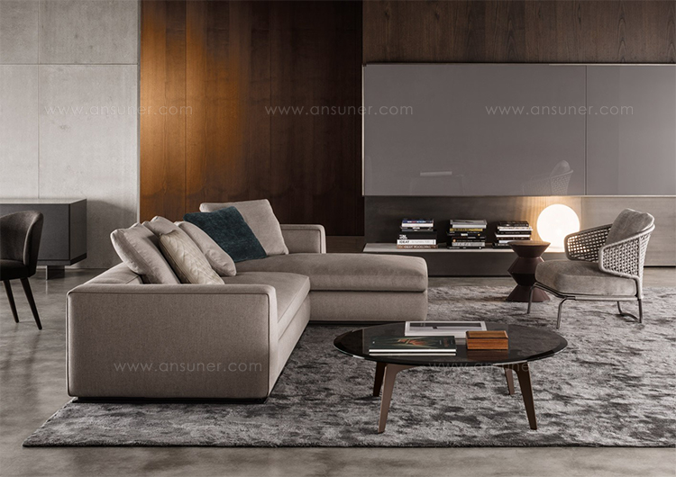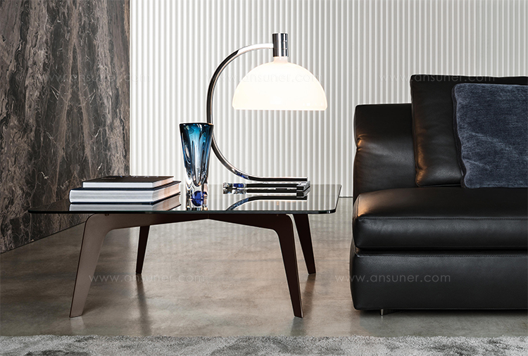 Kirk 木质底座茶几统一以矩形呈现,有三种长度可选。