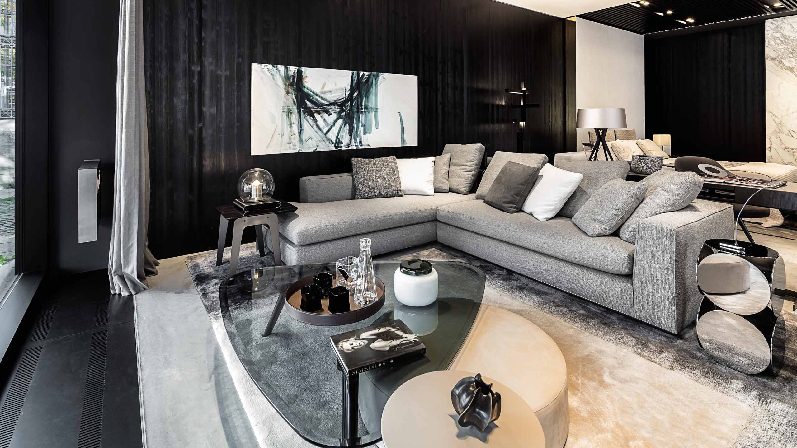 以精美梣木底座致敬传统黑檀木艺术,搭配拥有圆滑转角与柔和饰边的光泽漆面黑檀木、黑色脱蜡琉璃及 Marron Damasco 大理石台板。