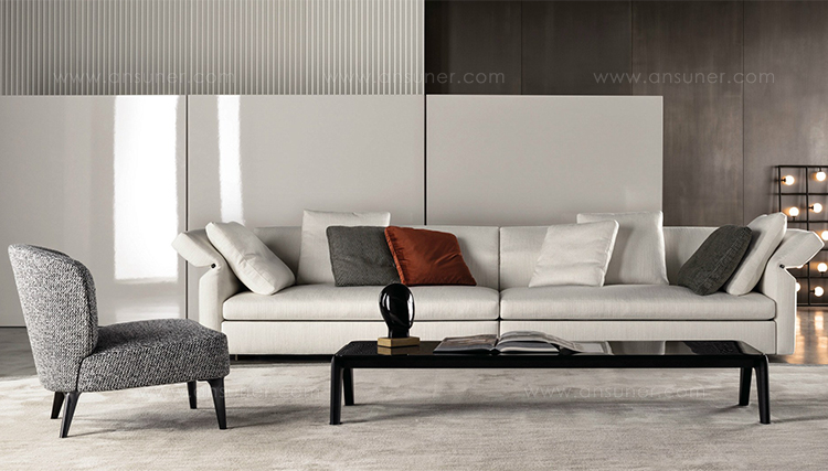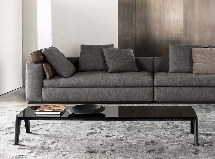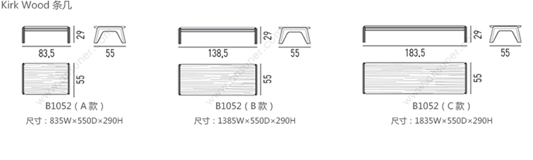 Kirk 木质底座茶几统一以矩形呈现,有三种长度可选。