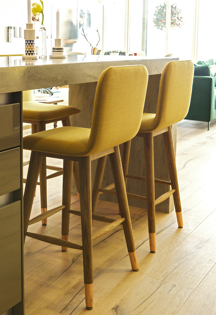 Mistral Bar Stool( 米斯特拉尔吧椅)旨在为其环境带来清新,现代,自然的风格。 抛光铜和白色美国橡木腿与彩色Kvadrat纺织品相结合。