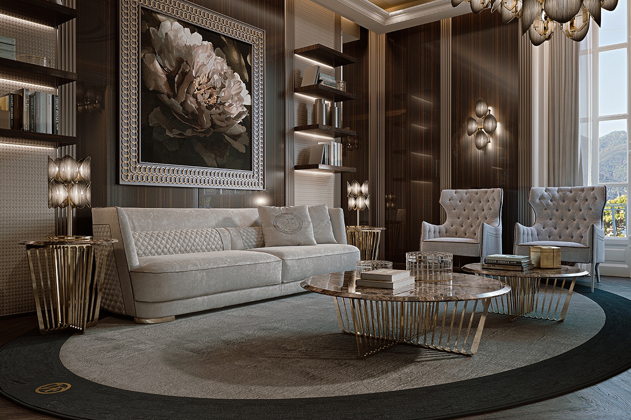 按钮簇绒家具的优雅与宏伟的高背和一个很酷的几何严谨
