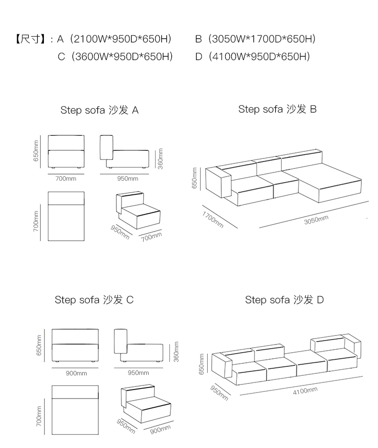 Step sofa 沙发 系列尺寸/示意图