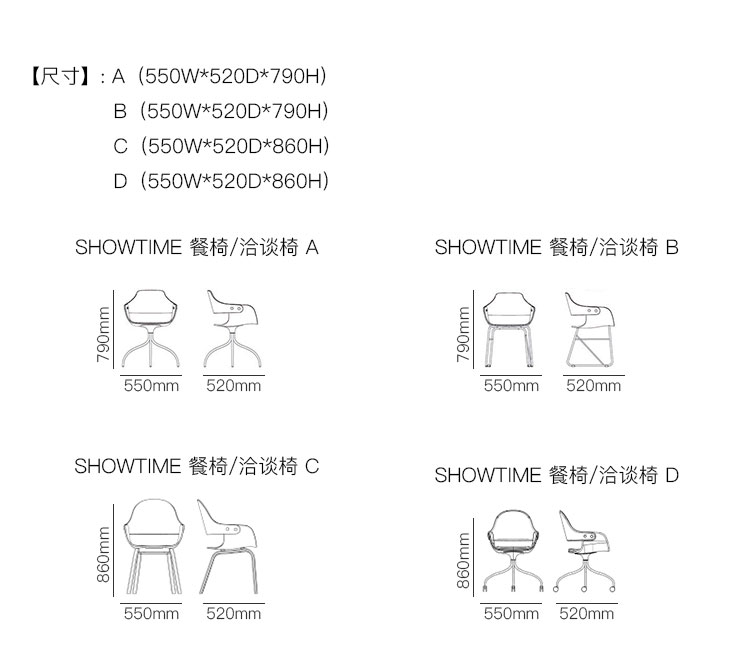 SHOWTIME 餐椅/洽谈椅 系列尺寸/示意图