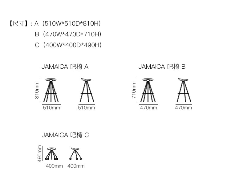 JAMAICA 吧椅 系列尺寸/示意图