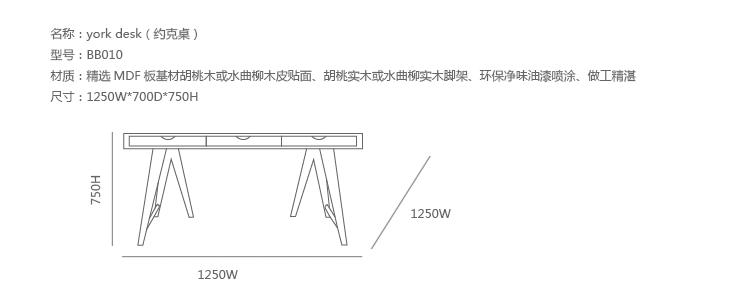 york desk(约克桌)是您创新思维工作的完美选择。这张桌子的特点实心胡桃木单板和三个灰色抽屉以满足大量的存储空间。无论用来做电脑桌使用,学习,绘画或者做手工制品,它都非常合适。制作采用精选MDF板基材胡桃木或水曲柳木皮贴面、实木脚架、环保油漆喷涂,做工精湛,品质一流。