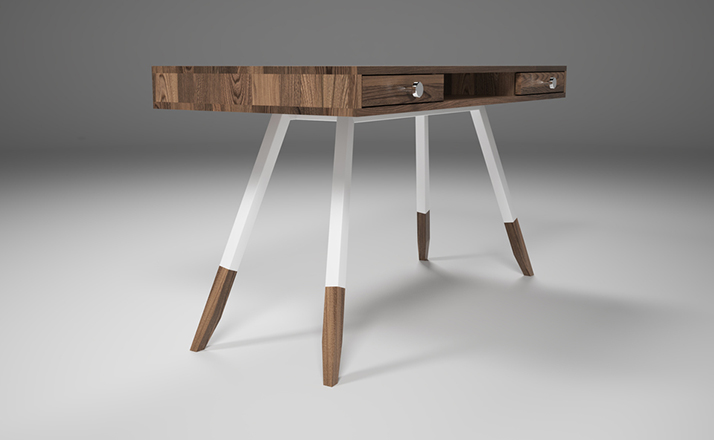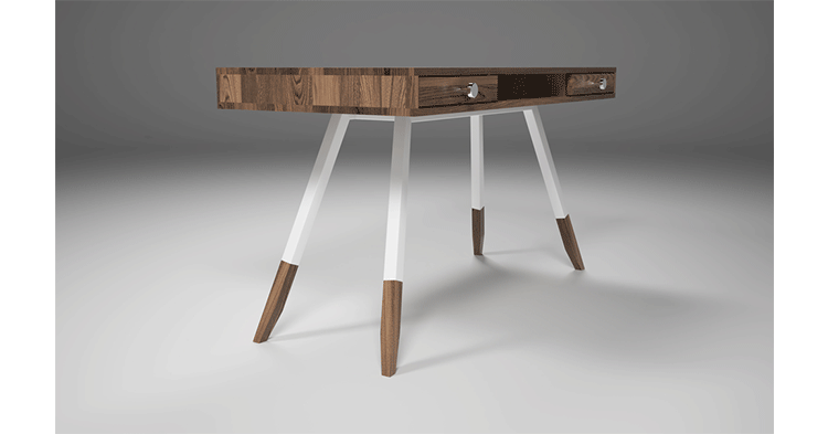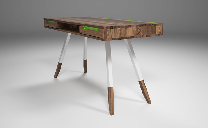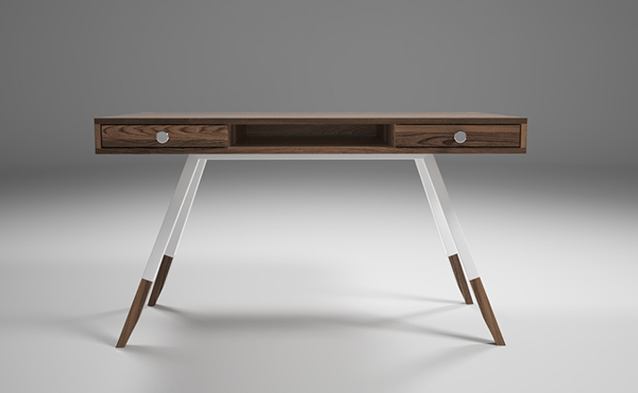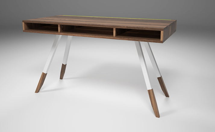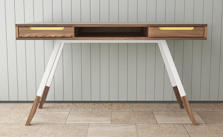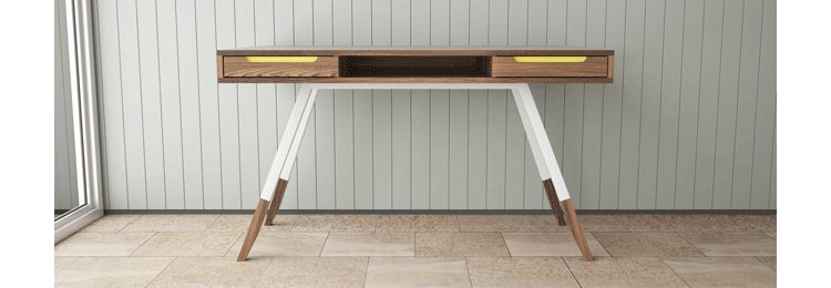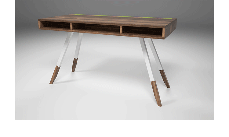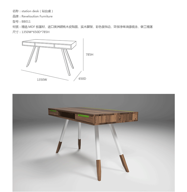 多功能、实用、漂亮,这些都不足以描述station desk(站台桌),其简单的线条,量身定做的抽屉甚至后背的电缆槽,使得它独一无二,你很难找到另一张桌子跟它一样。制作采用精选MDF板基材、进口美洲胡桃木皮贴面、实木脚架、彩色装饰边、环保净味油漆喷涂,做工精湛,品质一流。