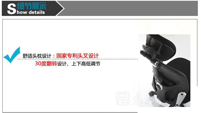 5、舒适头枕设计、30度翻转设计、上下高低调节