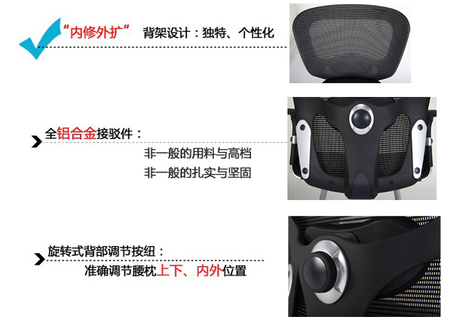 3、旋转式背部调节按钮:准确调节腰枕上下、内外位置