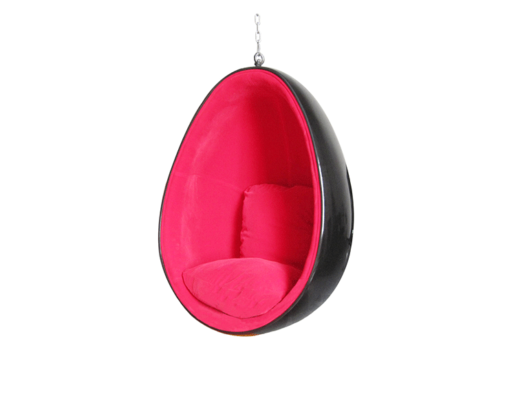 egg hanging chair(蛋挂椅)设计雏形为其经典的“球椅”,是介乎于家具和建筑之间的一种产品,它好像“房间里的房间”,椅子很矮,坐进去,就仿佛陷入另外的一个世界,能迅速拥有安静舒适的环境,外界的噪音也被抵挡住。可以躲在里面冥想、放松身心,或者打私人电话。设计师阿尼奥就在自己那把原版的“球椅”内壁上装了一个红色的电话机,“球椅”提供一个相对私密的空间。椅子底部有轴,能360度旋转,坐在里面的人向外看,眼前的风景会随着转动而改变。这样,即使蜷缩在椅子里,也不会有与外界完全隔离的孤独感。就是这样一个狭小的空间,却带给了人们无比的安全感与舒适感,也就是这把椅子的诞生,掀开了“PODLIFE” 的篇章。"