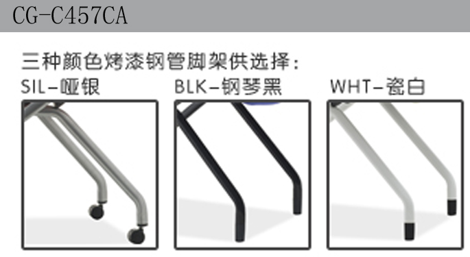 5、椅脚:黑色烤漆弓形脚架,牢固耐用、不易脆裂,承受力度強。弓形脚架上安装耐磨性極好的PU脚垫,在使用過 程中適合與多種材質的地板。