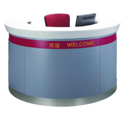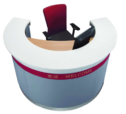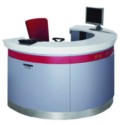 咨询服务台采用标准化的半圆角设置,台身设计严格按照银行统一标准,尺寸及弧度度量精确,标志设置清晰,且观赏性十足,台面采用浅色木色面和白色人造石台面相配搭,显得美观醒目。型号: