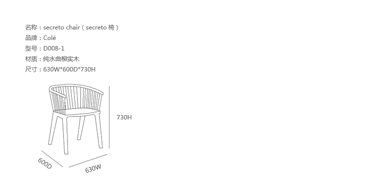 Secreto椅出自意大利设计品牌Colé,设计师为Lorenz*Kaz,一把同时展现现代与传统的扶手椅,Secreto椅传达了完美简洁的精髓是:“以传统工具为灵感去工作,以现代工艺品位去制作”。结构是其一个关键元素,在制造和细节上表现了其复杂性,尤其是其靠背,通过手工将每一个实木连锁杆紧紧固定在椅座上,可提供天然实木榉木,亚光漆的白色或黑色 (可按要求定做),您也可以选择舒适的纤维织物坐垫以提高舒适度。