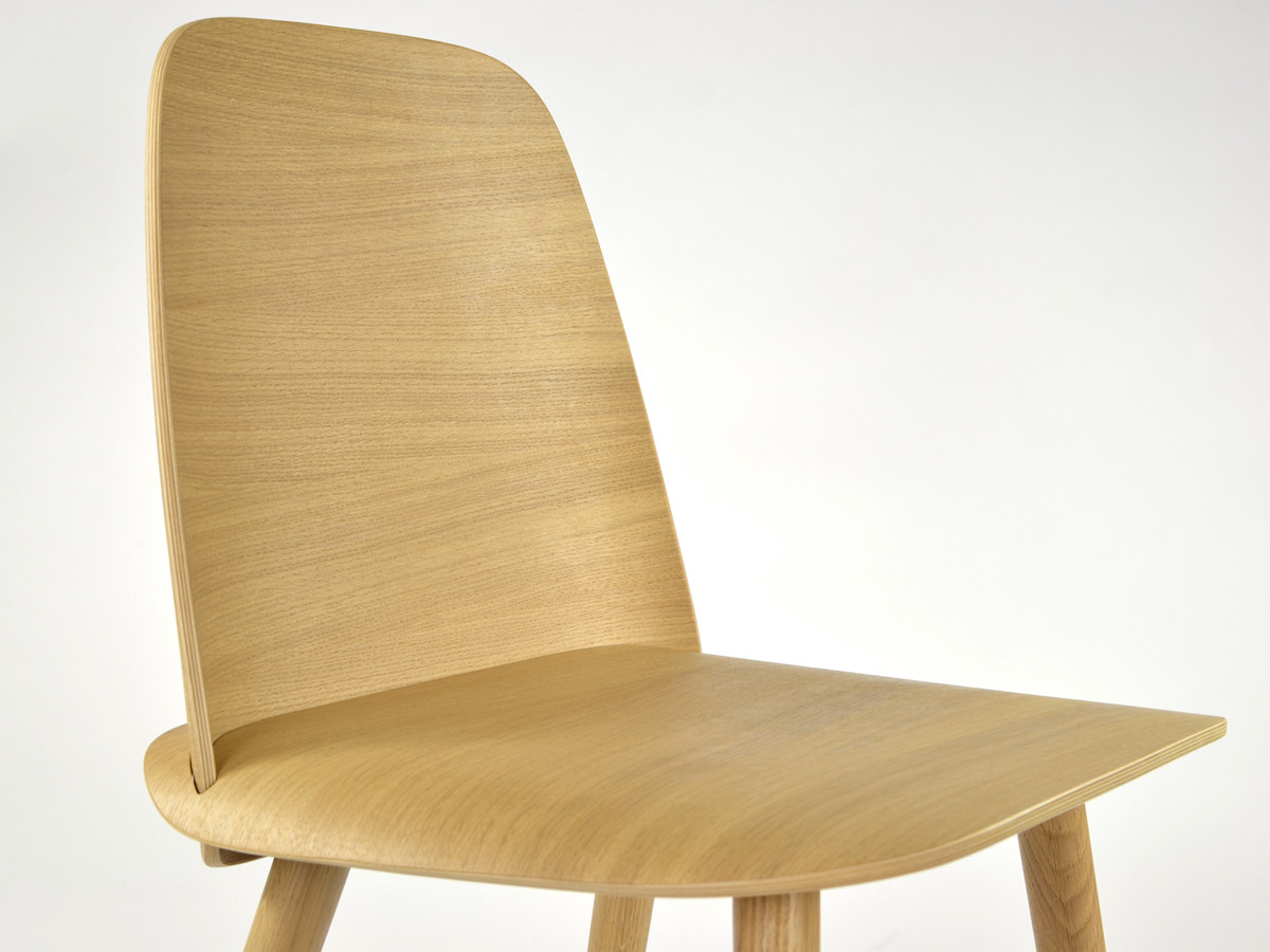 nerd chair(怪才椅)是著名设计师David Fabio设计的作品,材料和工艺有着经典的斯堪的纳维亚设计风格,通过创新集成之间座椅、靠背表达了强烈的个性。水曲柳实木框架、靠背和座板为曲木弯板。