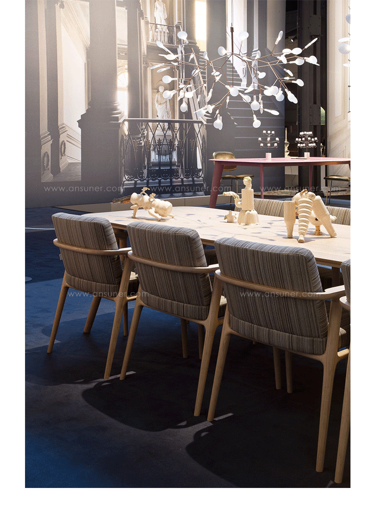 zio系列座椅由荷兰著名工业设计师Marcel Wanders设计的,其以独特的风格演绎了优雅和舒适,实木雕刻更具艺术气息,非常的高贵典雅,让人心情愉悦。水曲柳实木框架、高密度海绵坐垫和靠垫、高级布艺裹身,品质一流。