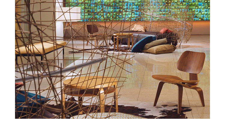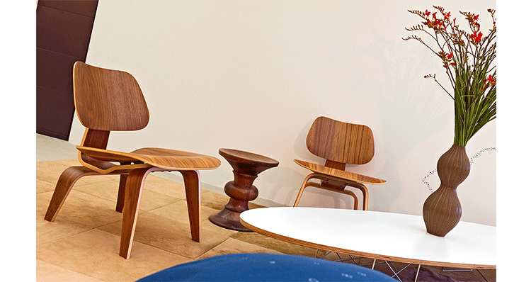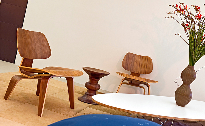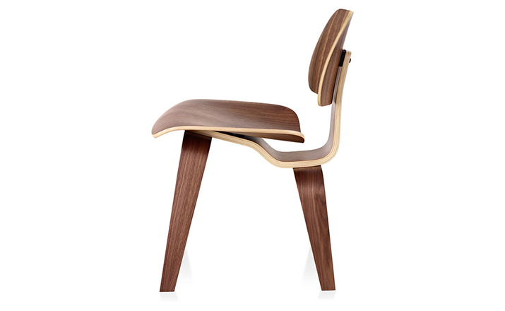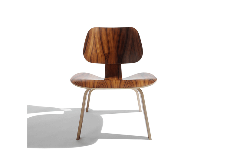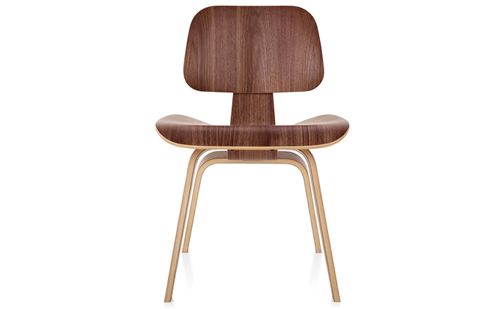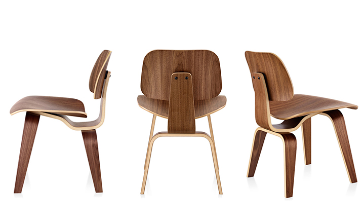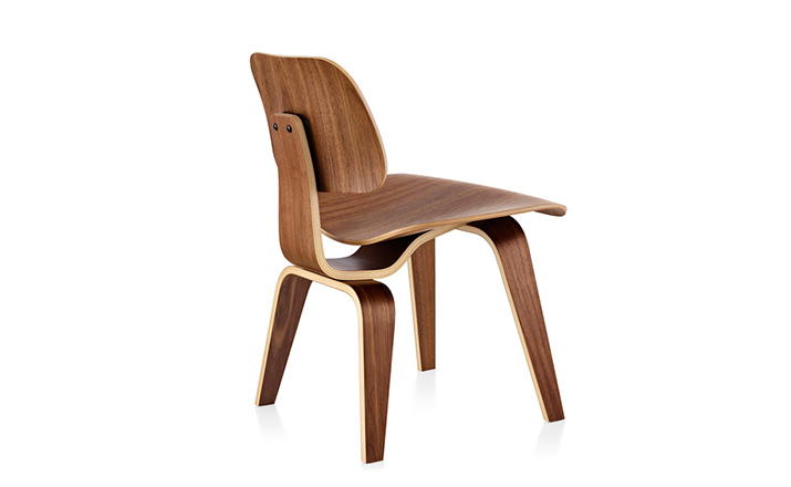 Designers Charles and Ray Eames established their long and legendary relationship with Herman Miller in 1946 with the boldly original molded plywood dining and lounge chairs.Designed to comfortably fit the body,the sculpted form of the molded plywood chairs are produced using thin sheets of lightweight veneer gently molded into curved shapes with natural rubber shock mounts to absorb movement.Since then,the chairs'aesthetic integrity,enduring charm, and comfort have earned it recognition as the best of modern design.Available in either a lounge or dining versions with chrome-plated steel or wood legs.