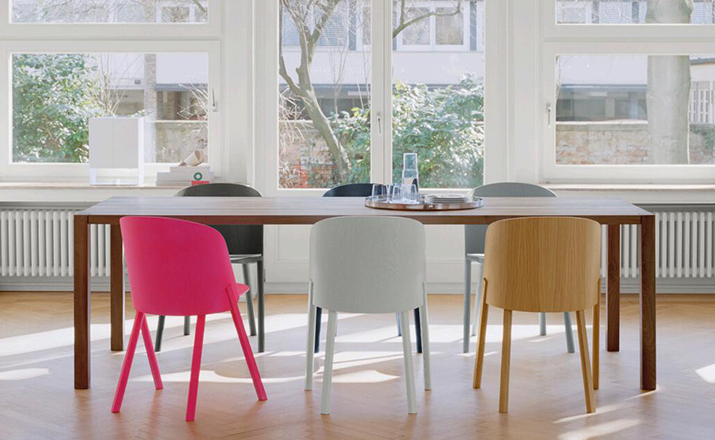named after the famous card trick,THIS THAT OTHER seating series is made of robust and versatile molded oak-veneered plywood.Rounded shapes give way to modern spirit and rational details in distinct quality.With a streamlined construction,THIS side chair represents a very economical and appealing solution,especially for the contract market.