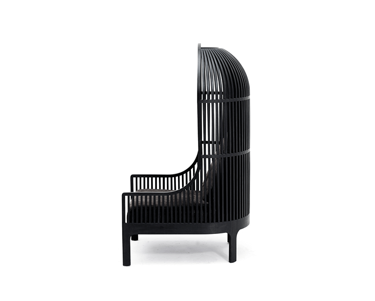 A unique seating experience.This lounge chair has a surrounding shell,making a cosy "nest" for the user. Nest keeps you close to your earliest memories.Whether placed in the middle of an immense desert or in a crowded lobby,Nest makes a statement.