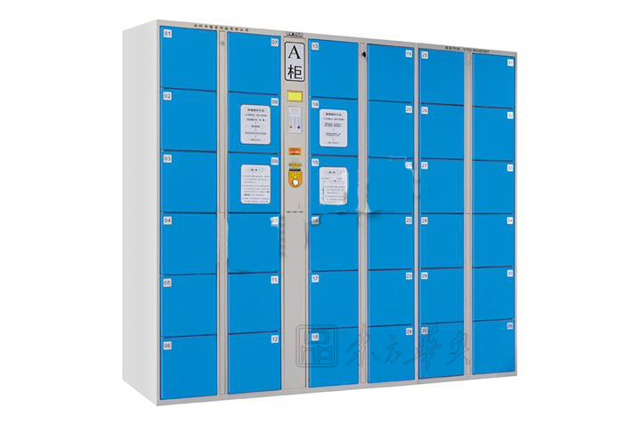 寄存柜柜体选用优质冷轧钢板,厚度不小于1.0mm,经冷加工成形后,用二氧化碳气体保护焊焊接装配而成,柜体结构坚固结实。柜体表面经除锈、除油、打磨、磷化处理后喷塑(不接受喷漆)。箱门背面增加纵向加强筋,提高箱门的防撞击能力。箱门两侧呈一定角度的弧线外形,增强箱门的防撞击能力,并且有效防止使用者因疏忽碰伤、磕伤。电控锁采用棘爪式结构,360度防撬、防插。