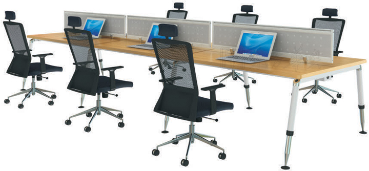 ※ 上图为类似款多人位办公桌,以简洁、大方为基调,与时尚元素的整体配合,显示了此系列特有的品味。底脚的稳重、构架的端庄,显示出它的与众不同。