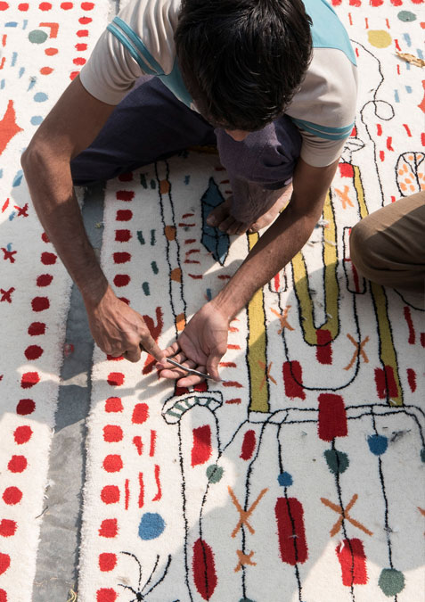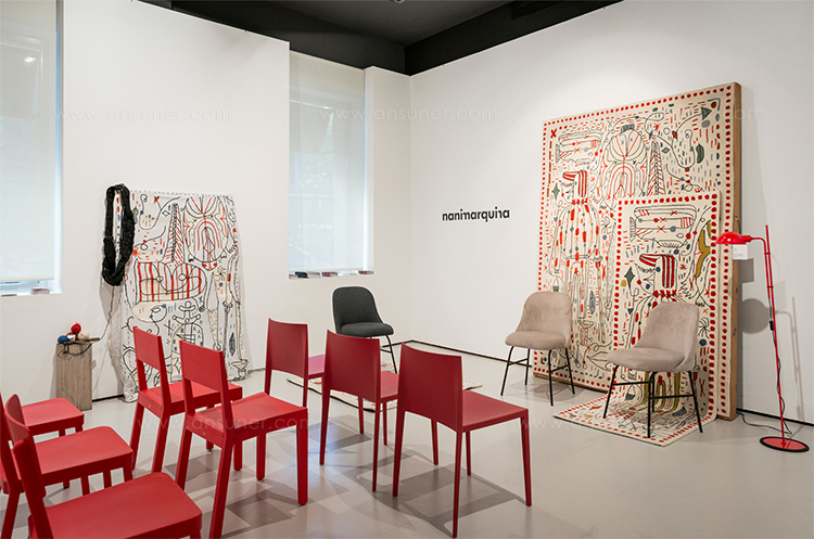 第一眼看到的是一片混乱的颜色和形状,它们侵入了地毯。然而,在仔细看,Jaime海因弹簧的想象力生活:海龟、嘴唇,手,凳子,鱼,男人等等...