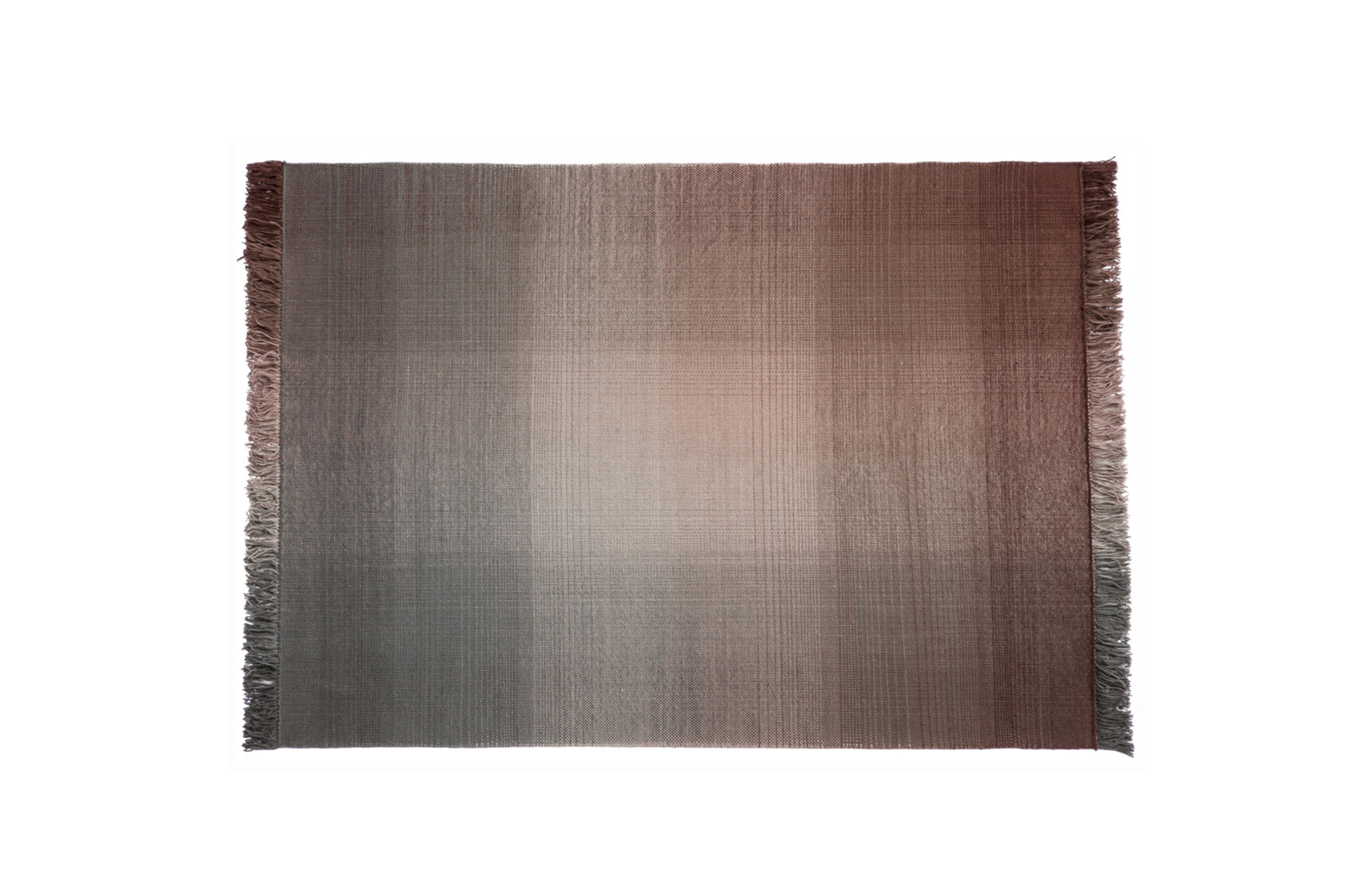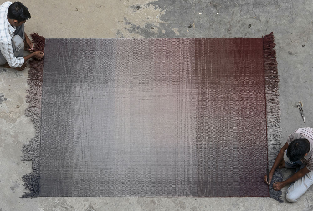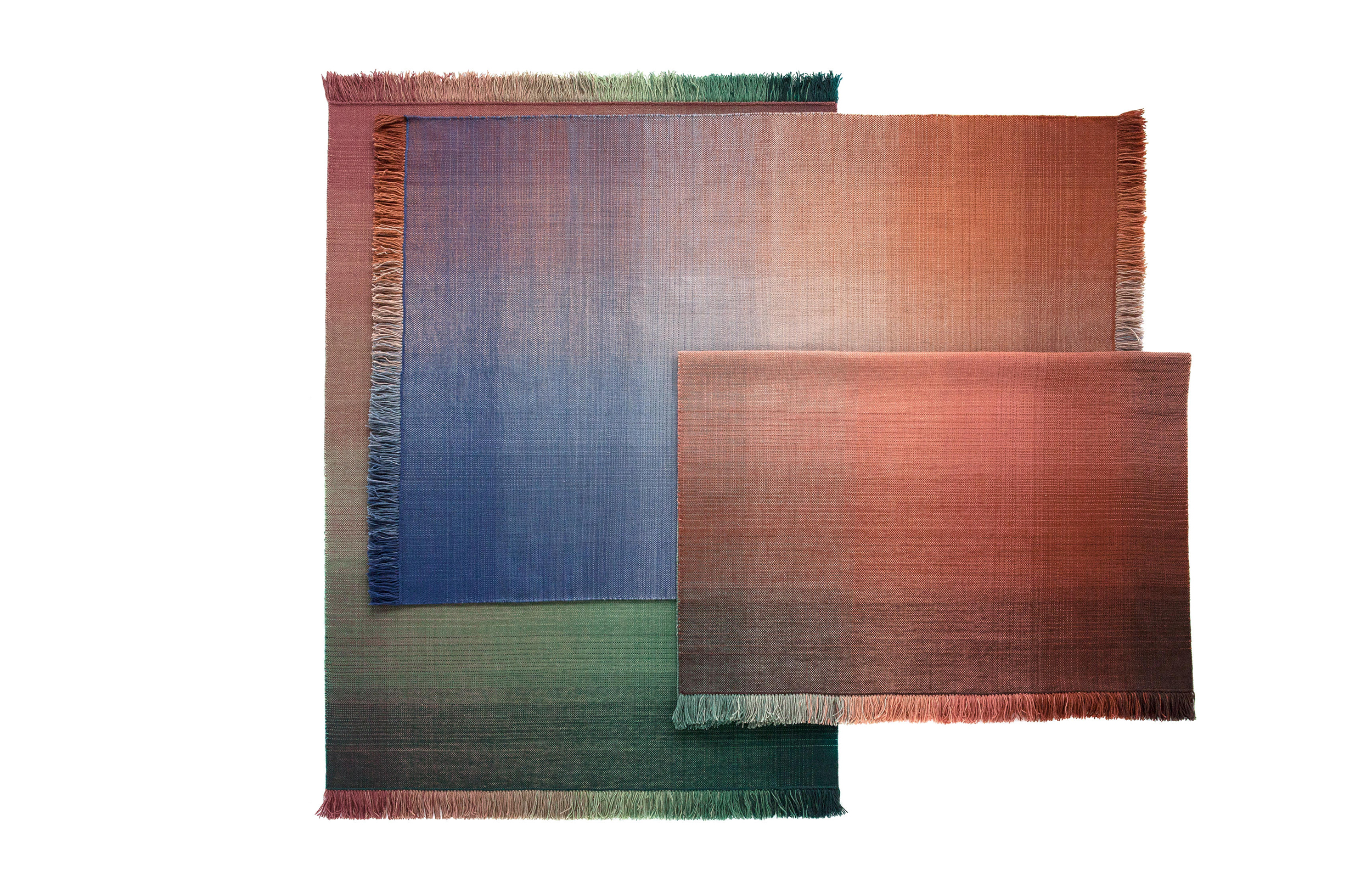 这种精致的简约风格反映了一种复杂的技术过程,以达到预期效果的密度、规律性和流动性。在同一平面上,每条地毯上都有两种渐变,一种是垂直的,一种是水平的。