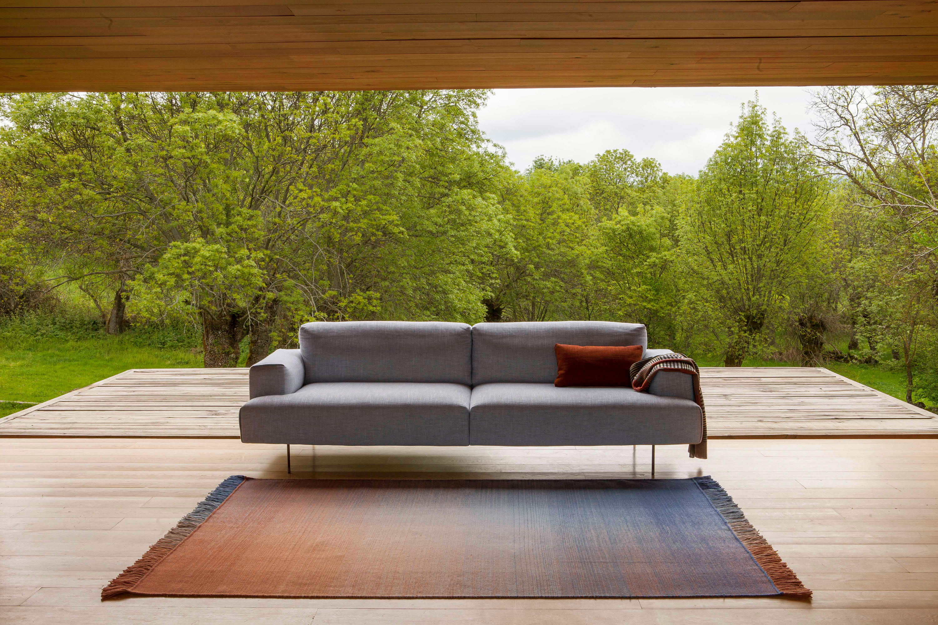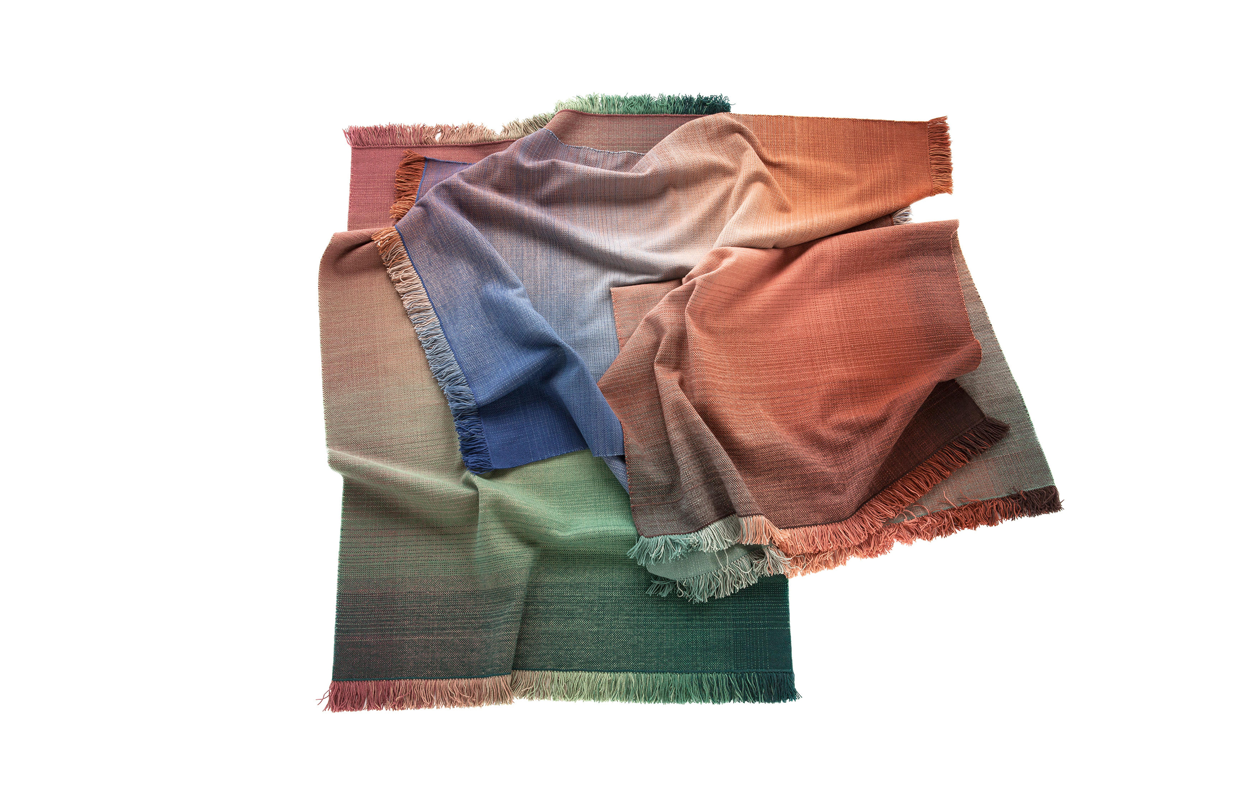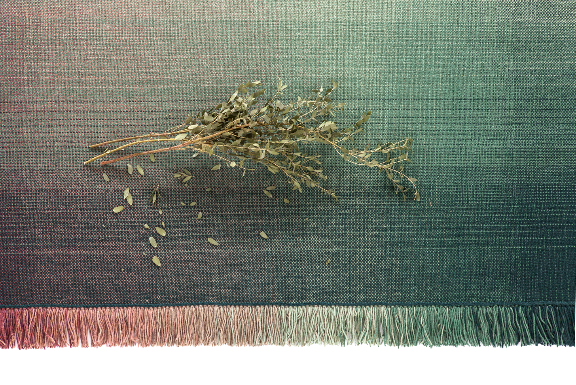 这种精致的简约风格反映了一种复杂的技术过程,以达到预期效果的密度、规律性和流动性。在同一平面上,每条地毯上都有两种渐变,一种是垂直的,一种是水平的。
