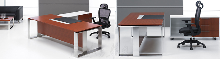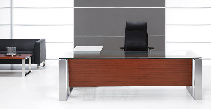 ※ 上图为类似款大班台,钢化玻璃台面,不锈钢脚架!