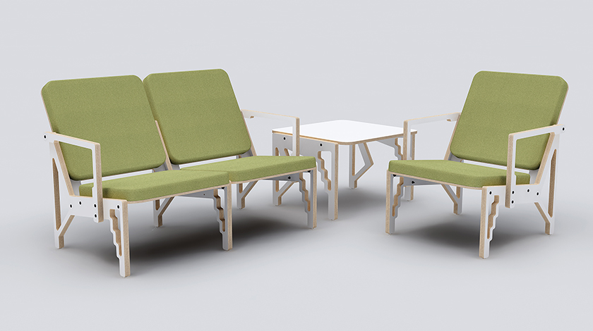 CNC沙发是一款环保设计,其所有材料可回收利用、无污染,可扁平包装利于运输,非常容易组装。