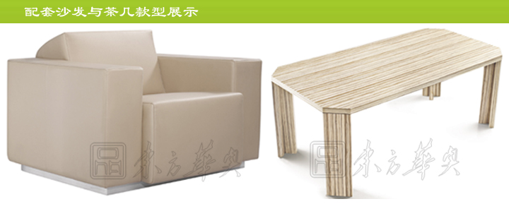 ※ 真皮沙发和实木茶几,客户在配套工程时可以选择同系列产品,统一风格与协调办公气氛。