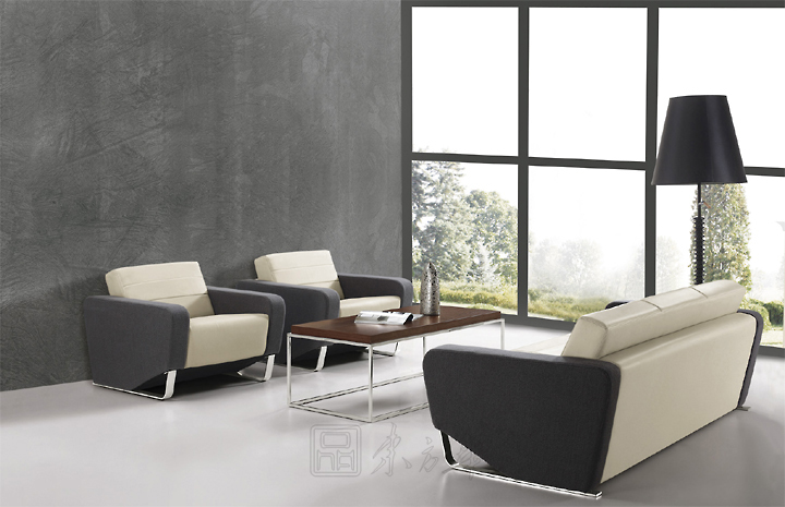 ※ 上图为系统配套休闲区场景展示,不锈钢脚架沙发,实木面茶几颜色可与班台同色。