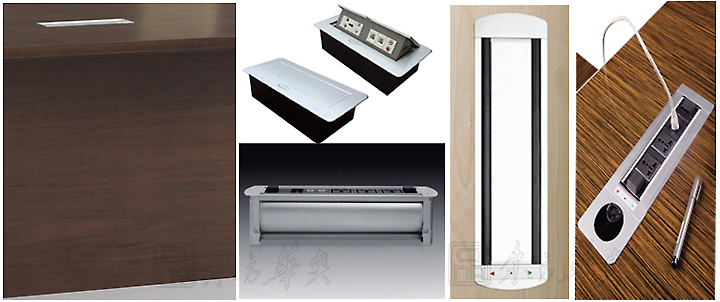 ※ 上图为此班台可选配的线盒,有电动翻转线盒,手动线盒,毛刷出线孔!