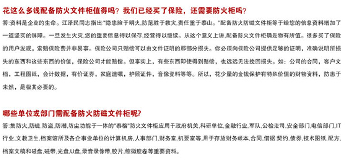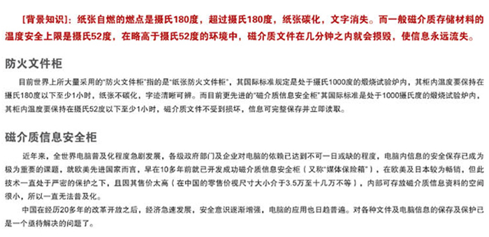 1,纸张防火抽屉主要用于主管部门,财务室、档案室、设计室和销售部门储存单位重要纸张文件,如:帐簿、客户资料、合同书、借据、订单、汇单、配方、契约、债券股票、技术图纸等;