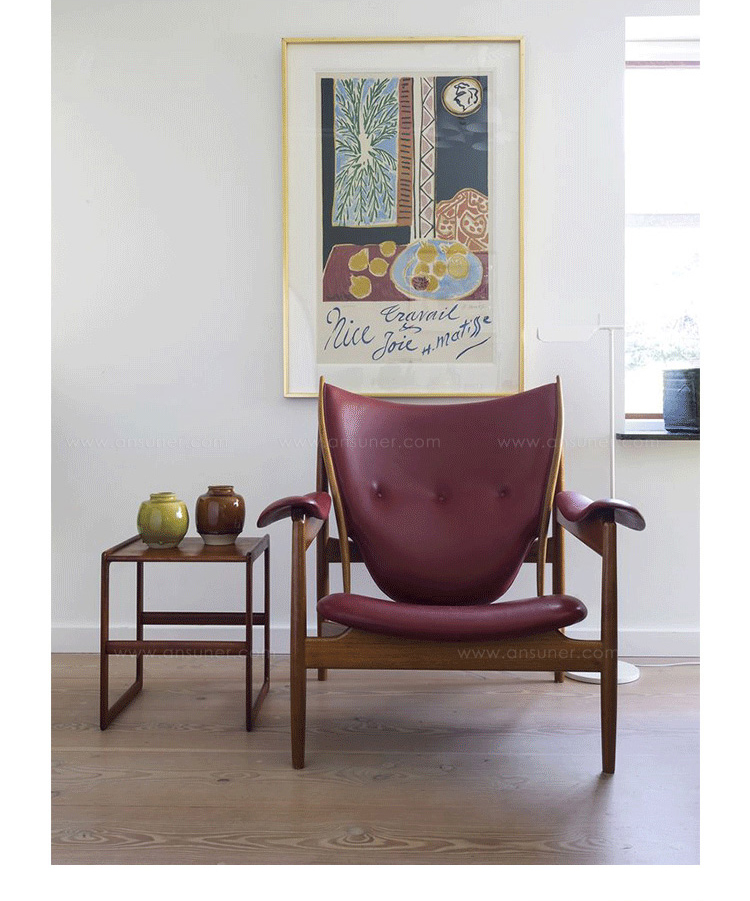酋长的椅子是芬居里(Finn Juhl)在他职业生涯的顶峰的设计杰作。当它在1949年被提出,酋长椅子上标志着一个丹麦家具设计的更新。芬居里(Finn Juhl)捡起至关重要的灵感来自于当代艺术场景的时间从古代文化以及艺术和工具。