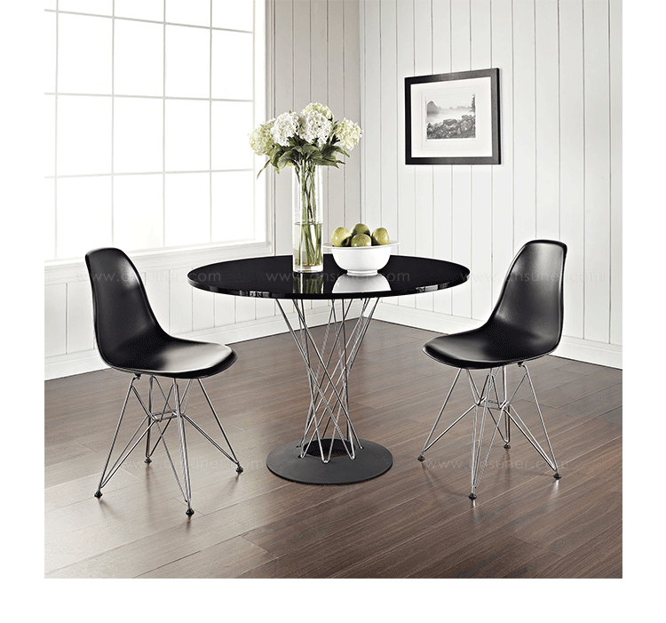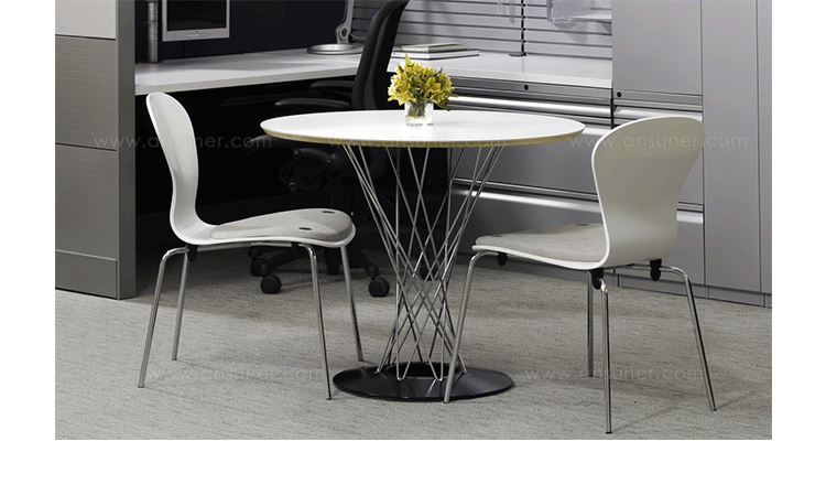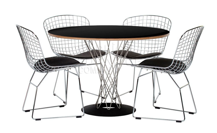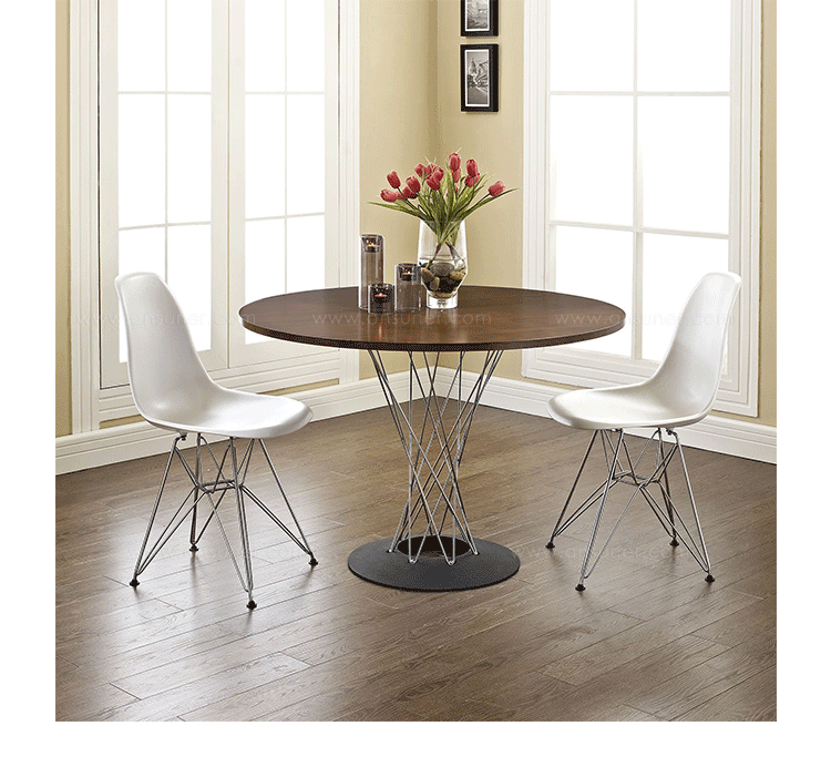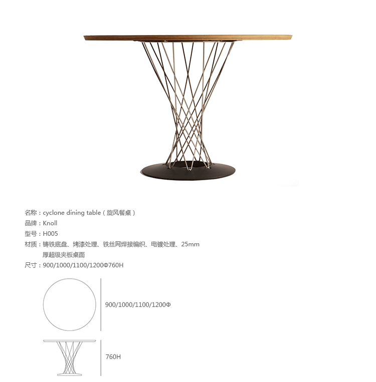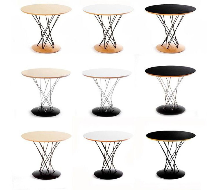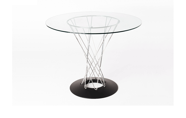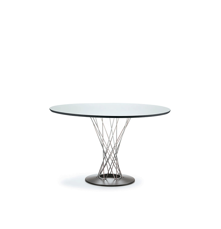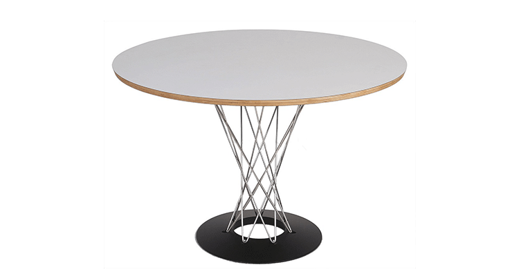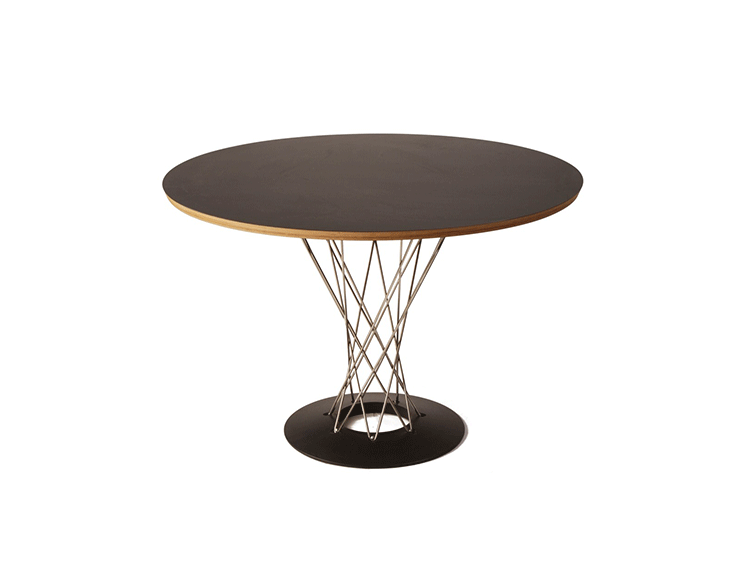 Cyclone Dining Table(旋风餐桌)由日本裔设计师Isamu Noguchi(野口勇)在1953年设计。野口勇非常擅长利用材料的天然特性,他的设计总让人感觉像是各类材料自然搭配在一起,而且不失完整。 野口勇餐桌(Sable Noguchi Dining Table)的桌面由15层的天然木皮压合而成,餐桌架是多根金属枝焊接而成,再配上沉重的铸铁底座,一件现代艺术家具就诞生了。这件标志性的设计被人称为“飓风”。
