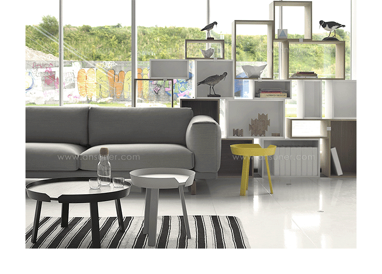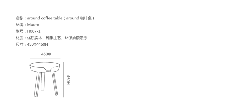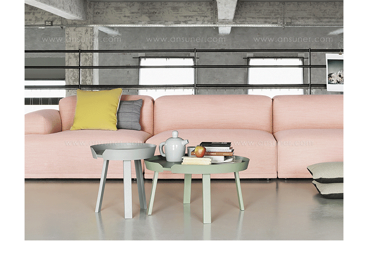 Around 边几/咖啡桌系列是丹麦设计师 Thomas Bentzen 2011 年发表的作品,结合简约外型与多样功能性,加高的桌缘设计减低桌面物品掉落的机会,是款相当平易近人的设计且容易搭配。设计师 Thomas Bentzen 在设计这款咖啡桌时说,希望可以寻求一种友好、优美的风格,这款小巧简单的咖啡桌很具有现代感,而且将不同尺寸多个组合在一起是个不错的选择。