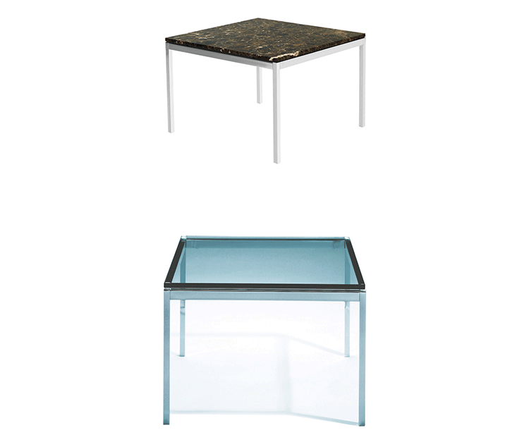 Florence Knoll Coffee and End Tables,designed to furnish the new interiors of postwar America,are scaled-down translations of the lines,gestures and materials of modern architecture.Consistent with all of her designs,the tables have a spare,geometric presence that reflects the objective perfectionism and rational design approach Florence Knoll learned from her mentor,Mies van der Rohe.