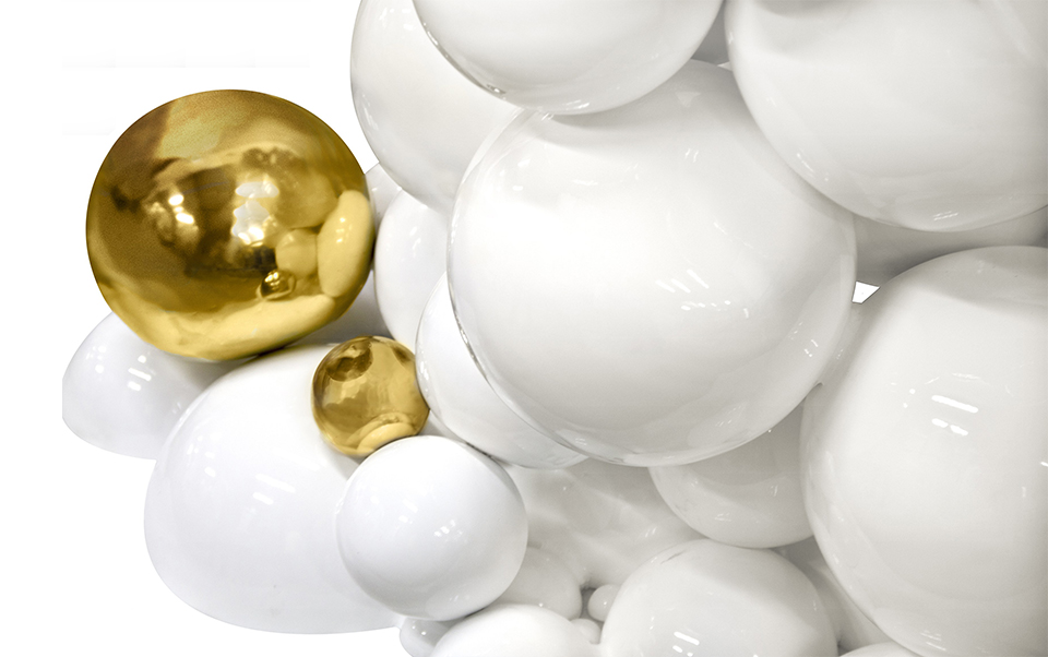 After our recent outstanding moment of inspiration - the creation of Newton dining table - we conceived a console inspired by this exclusive piece of furniture. Once again, we defy the laws of physics and redesigned this monumental console made from aluminum and lacquered in black, with a high gloss varnish. The spheres and semi spheres that complete this futuristic console are gold plated. This intriguing console is ideal for any modern living rooms, bedrooms and hotel lobbies characterized by luxury interior design furnishings.