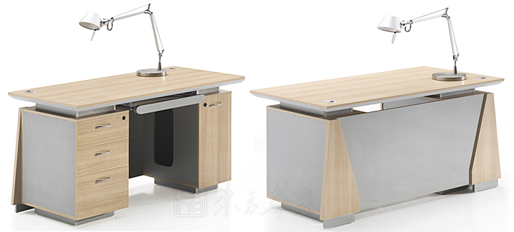 ※ 上图为职员桌正反图片展示,落地柜为固定型,不可左右互换,请在订购时确认侧柜的左右位置,侧脚板款式新颖,设计独特!
