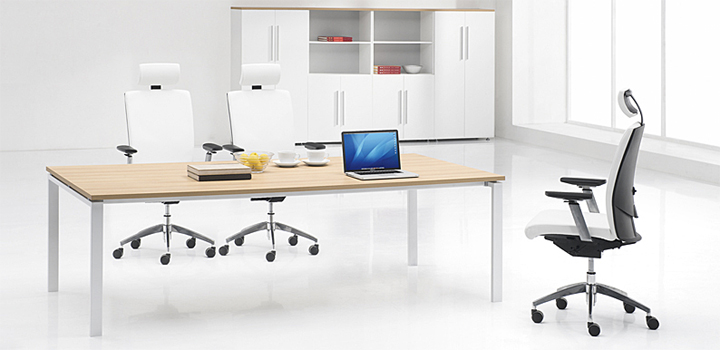※ 上图为“方通脚”款式会议桌,脚架的颜色有银灰色和白色选择,台面板有多重选择,满足领导临时接洽和会议的需要!